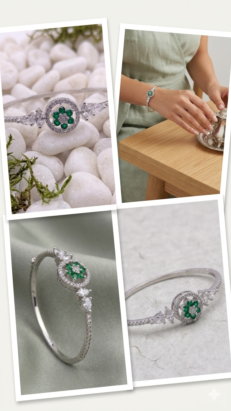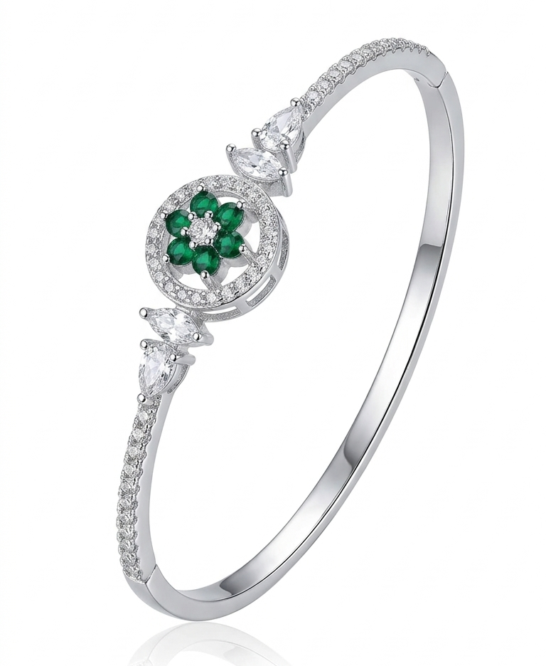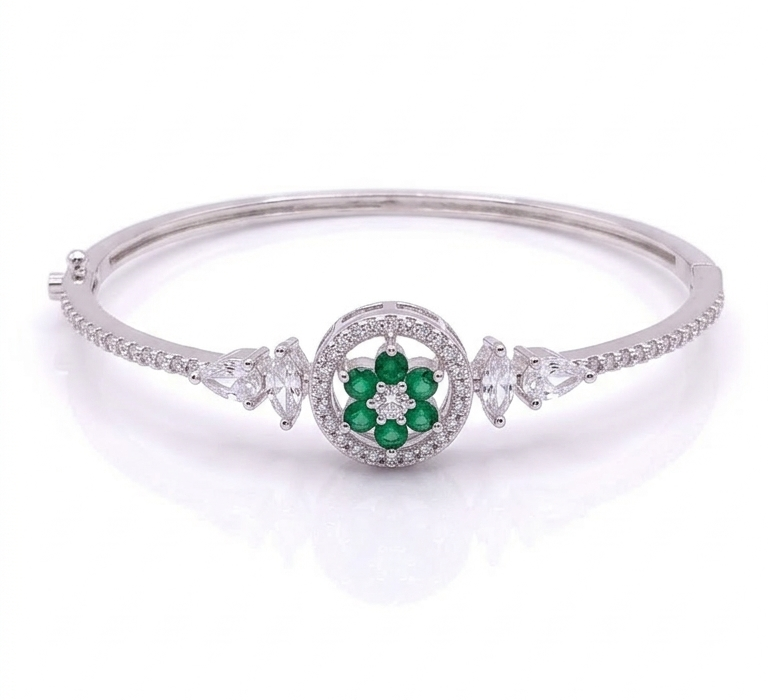 American Diamond Silver Polish Bracelet for Women | Premium Brass Kada | Elegant AD Stone Bangle | Adjustable Luxury Bracelet